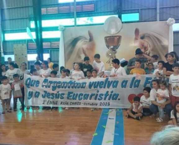 19/03/2026 – El padre Rubén Cámpoli de Laboulaye, Beatriz Aquino de Resistencia, Carlos Basualdo de Tortugas y Funes, y Karina Miranda presentaron a la gran familia de los niños adoradores en Argentina, que se reúne una vez al año en distintos puntos del país. Hasta el momento, los encuentros se realizaron en Laboulaye. (Córdoba) en el 2022, en Resistencia (Chaco) en el 2023, en Tortugas (Santa Fe) en el 2024 y en Funes (también provincia de Santa Fe) el año pasado. Este año el encuentro nacional de niños adoradores será en la ciudad de Formosa, a fines del 2026.