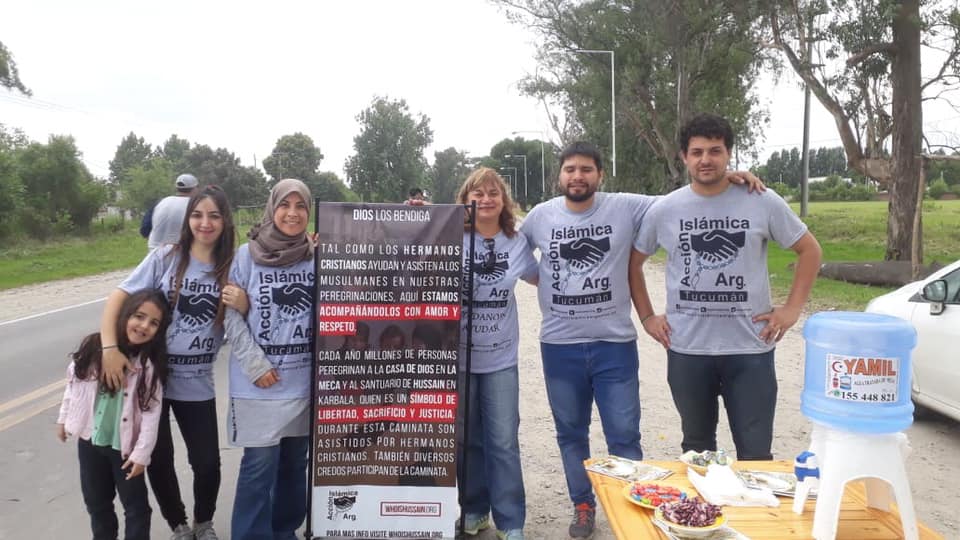 «Tal como los hermanos cristianos ayudan y asisten a los musulmanes en nuestras peregrinaciones, aquí estamos acompañándolos con amor y respeto. Cada año, millones de personas peregrinan a la casa de Dios en la Meca y al santuario de Hussain en Karbala, quien es un símbolo de libertad, sacrificio y justicia. Durante esta caminata son asistidos por hermanos cristianos. También diversos credos participan de la caminata», rezaba el cartel con el que se instalaron en la ruta.