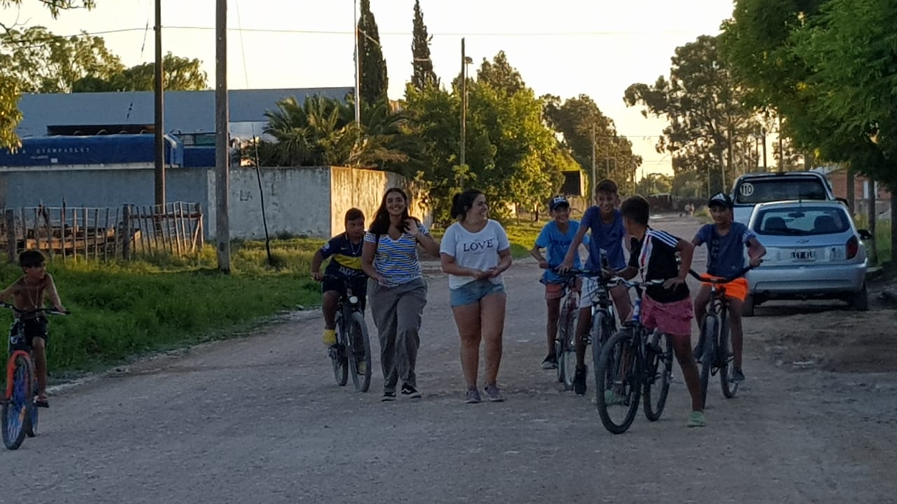 Para resumir la experiencia, podemos contarles que arrancábamos la mañana poniendo nuestra misión en manos de Jesús y María, para que llenos de su gracia podamos salir al encuentro con los vecinos. Salíamos en bicicleta desde la casa de retiro Rosa Mística, hasta el barrio Santa Teresita, para encontrarnos con la gente y así poder compartir una charla, un mate, una oración, regalarles estampitas y rosarios. A su vez aprovechamos ese compartir para invitar a los niños a los juegos que realizaríamos durante la tarde.